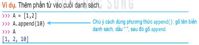 - Lệnh thêm phần tử vào cuối danh sách là